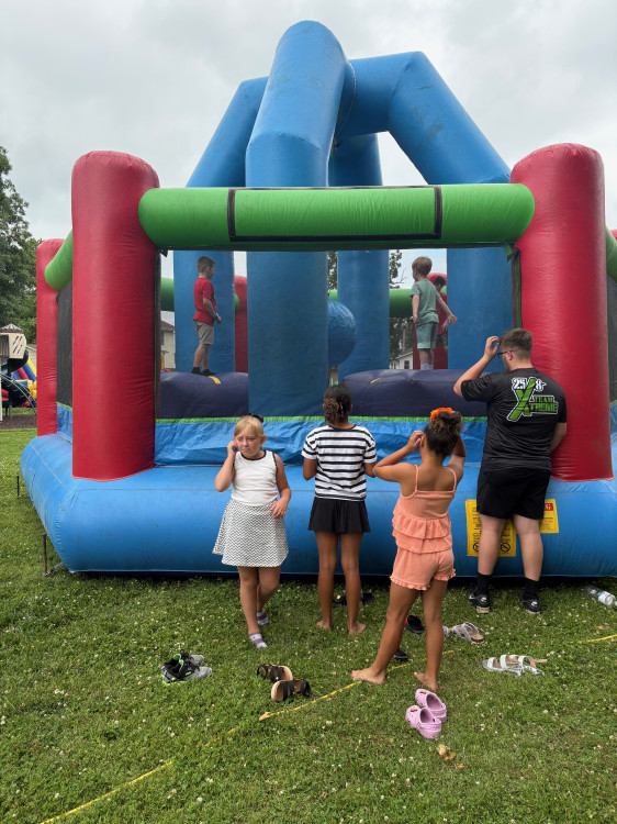 - OCCUPANCY: A maximum of 5-6 kids of equal size at one time for bounce houses, and 1 person at a time for slides is what most inflatable manufacturers recommend.
